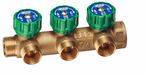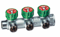 MULTIFAR - modular manifold made of “CR” (DZR) brass for both domestic services and heating systems. Complete with manual controls. Each port is equipped with 2 silk-screen printed discs for circuit identification.